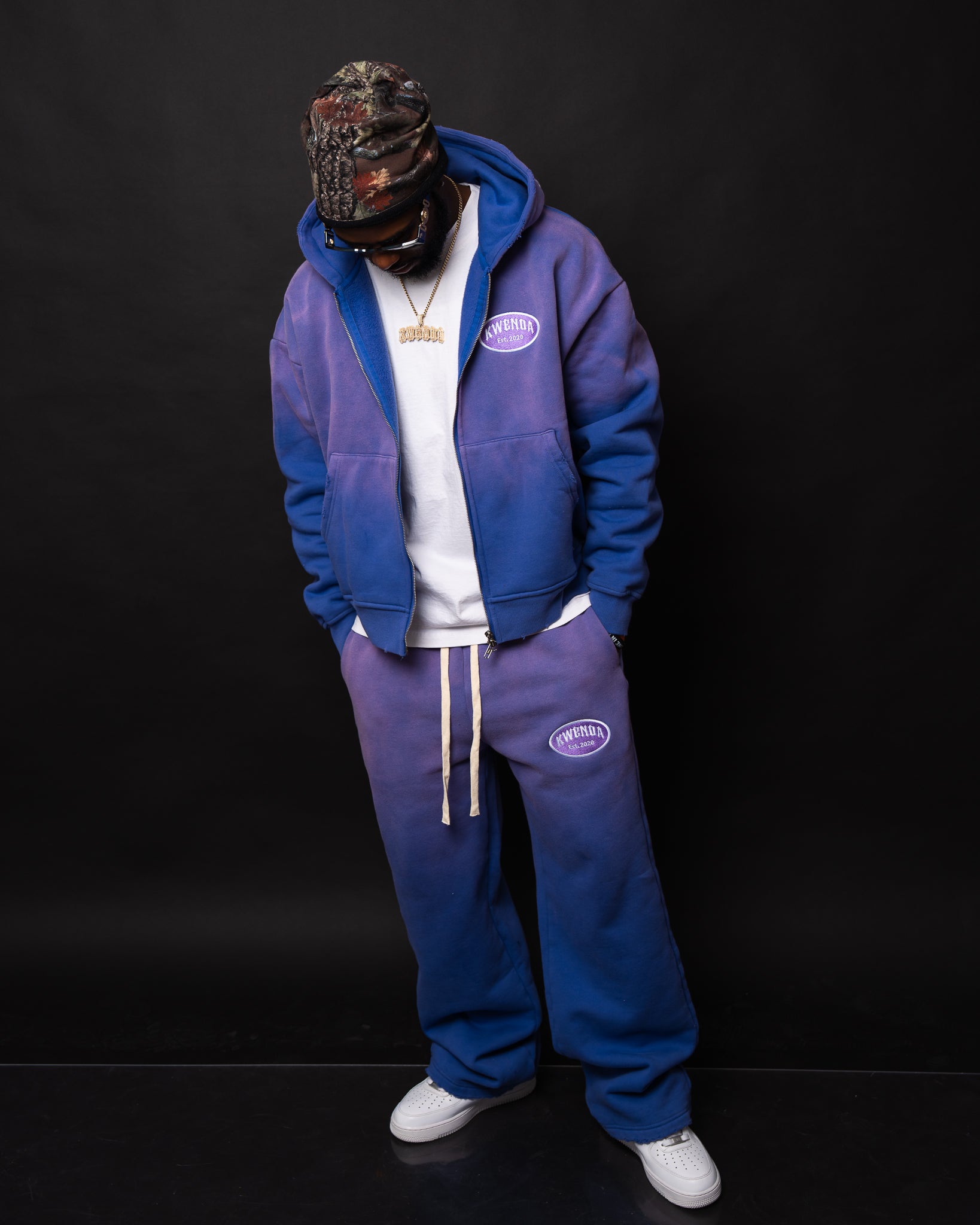 100% Cotton, Heavyweight Sweats 400 gsm. Baggy Fit straight legged distressed bottom